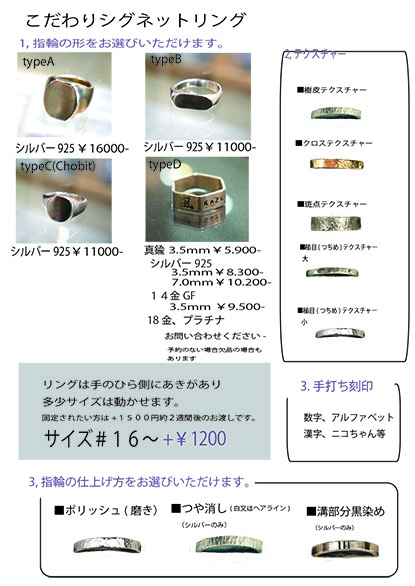 シグネットリングは神戸ステューディオのみ